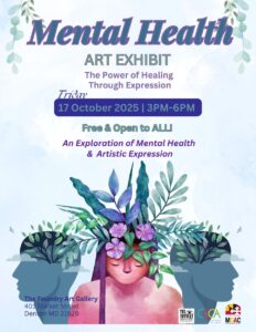 Throughout the entire month, our gallery will feature a special exhibit showcasing artwork from local artists that reflects on mental health, personal stories, and the healing power of creativity.