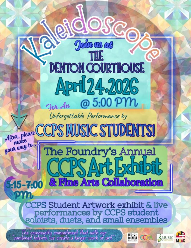 Kaleidoscope: A Celebration of CCPS Student Music & Art Date: Friday, April 24, 2026Time: 5:00 PM – 7:00 PMLocations: Denton Courthouse Green & The Foundry – Denton, MD Join us for Kaleidoscope, a community celebration showcasing the incredible talents of Caroline County Public School student musicians and artists. The evening will begin at 5:00 PM (more…)